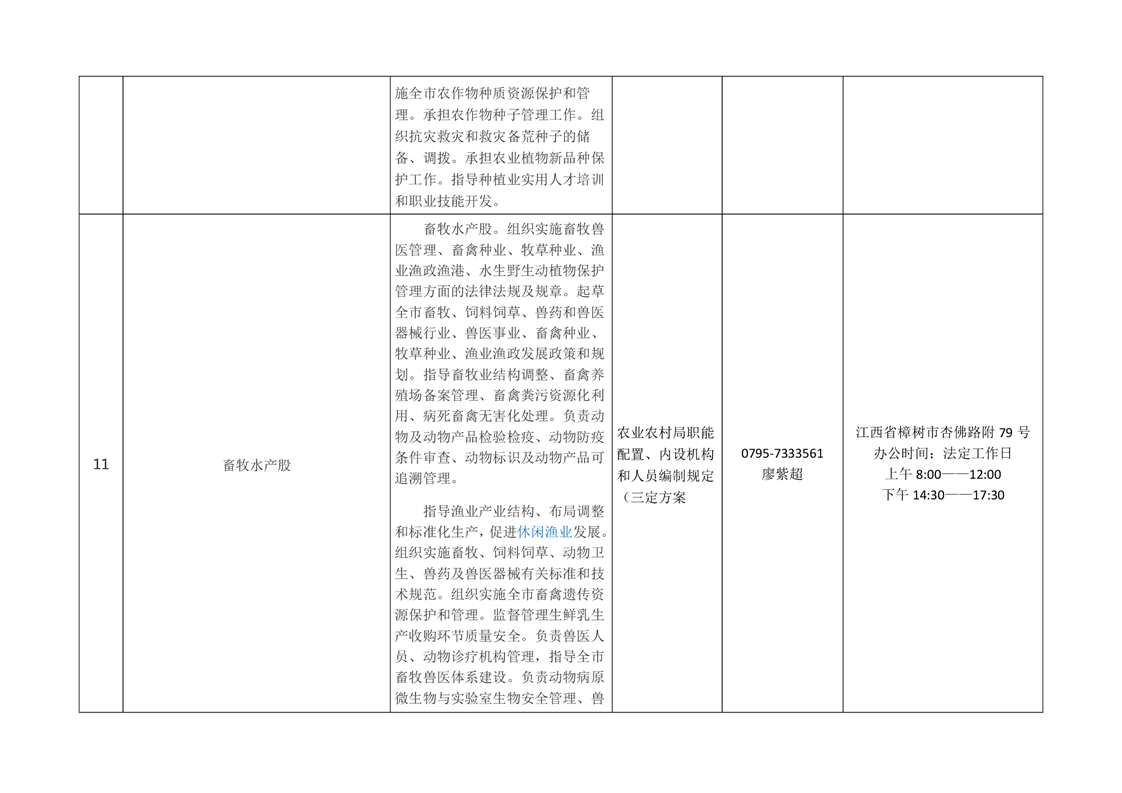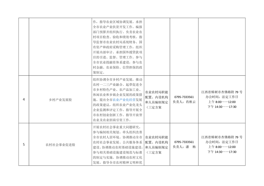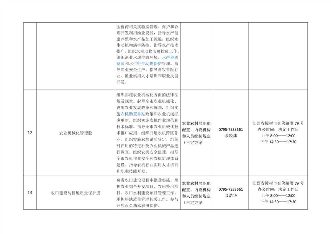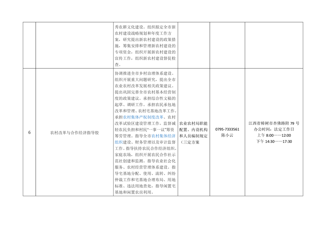 樟樹市農(nóng)業(yè)農(nóng)村局內(nèi)設機構(gòu)和辦公地址、辦公時間、聯(lián)系方式及負責人信息