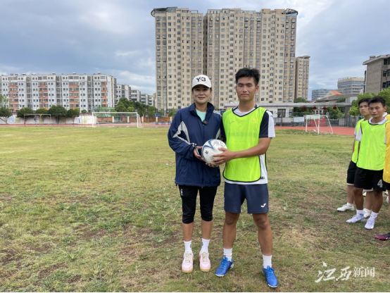 在熱烈的歡迎儀式上,學校負責人向韓端介紹了樟樹三中長期以來堅持“五育”并舉,高度重視音體美特色教學,特別是校園足球發展的豐碩成果。學校構建了系統的足球訓練方案,將足球運動納入體育課程體系,組建了各年齡段梯隊,并積極探索足球與藝術教育的融合路徑,形成了鮮明的辦學特色。韓端對此給予高度評價,她表示:“看到學校對體育、對足球如此重視,并且有如此系統的規劃和藝術氛圍的營造,非常欣喜,這正是青少年足球發展的沃土。”