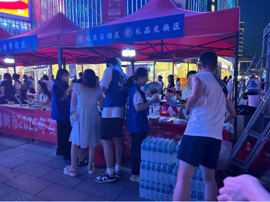 樟樹市就業之家的服務不止在賽場!就在贛超戰火在樟樹點燃的第一時間,樟樹市就業之家便已搶先開球——聯動時代廣場商業中心,把招聘會搬進了“夜市”!精心準備的1000瓶冰鎮礦泉水、300根冰棒和大量清涼小扇子,讓求職者在酷暑中感受到陣陣“政策清涼”。26家企業攜156個崗位“擺攤求賢”,吸引超1500名求職者熱情參與,場面火爆。剛從外地回來的技術工小陳,在一家本地藥企攤位前聊得火熱:“真沒想到晚上逛個街也能找工作,崗位挺對口,待遇也不錯,關鍵是離家近!”