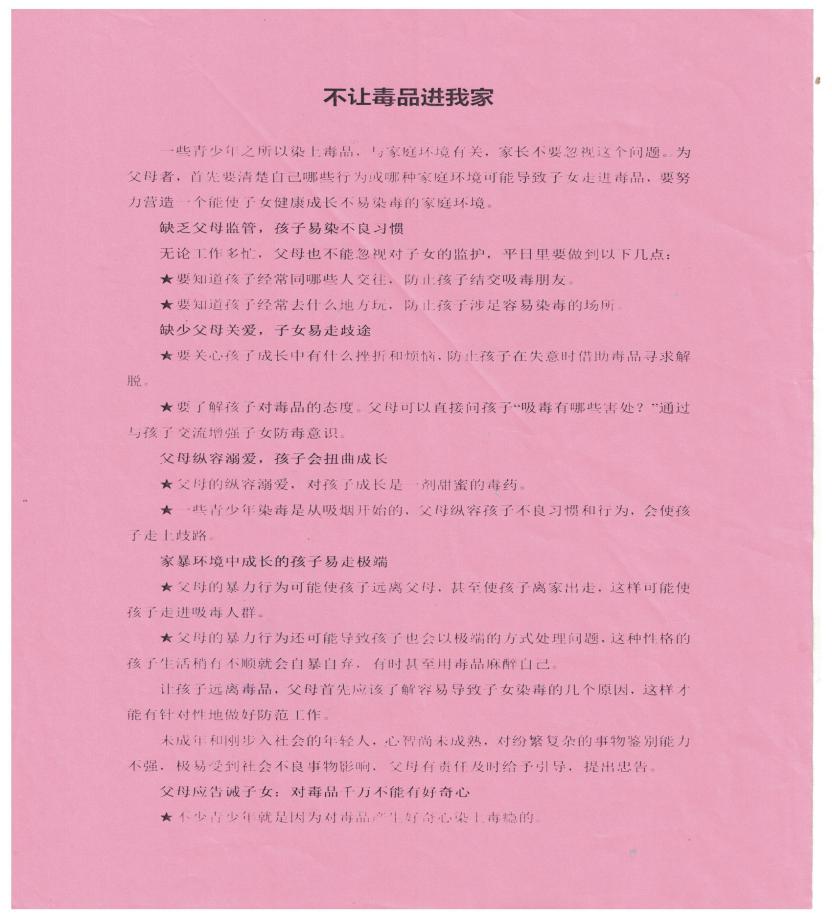 大學生志愿者向居民介紹了合成毒品的危害性、毒品的不同種類、如何識別販賣毒品的招數,詳細闡述吸毒對個人、家庭、社會造成的嚴重危害,同時號召廣大群眾要勇于和涉毒違法犯罪活動作斗爭,共同維護社會和諧穩定。