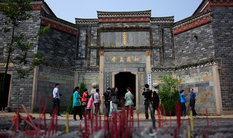 三皇宮坐落于樟樹市區北部邊街,占地3600平方米,建筑面積1634平方米,由正殿、種殿、廂房、里院、戲臺等部分組成,結構呈四合院形,凹形八字門樓,青灰磚中嵌綠豆石浮雕人物、走獸、百草花卉圖案。門樓上端豎鑲石刻雕匾“三皇宮”,橫鑲“如游上世”,門聯為“歷刦真師朝圣闕,終天草木載皇仁”。每逢農歷四月二十八日和藥交會期間,都會在這里舉行祭祖活動。