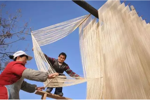 劉公廟手工掛面源于清代,至今已有200多年歷史。劉公廟掛面以其用料考究、做工精細、面條盤圓不折、耐煮不糊、聞有清香、吃而爽口,而名聞市內外。劉公廟面師扯出的掛面細長而有韌性,一般長度為1.5米,最長的可達2米,有“細若錦絲、亮如銀線”的美譽。素有“面鄉”之稱的劉公廟,面坊比比皆是,農閑時節,年頭歲尾,掛滿面條的面架隨處可見。