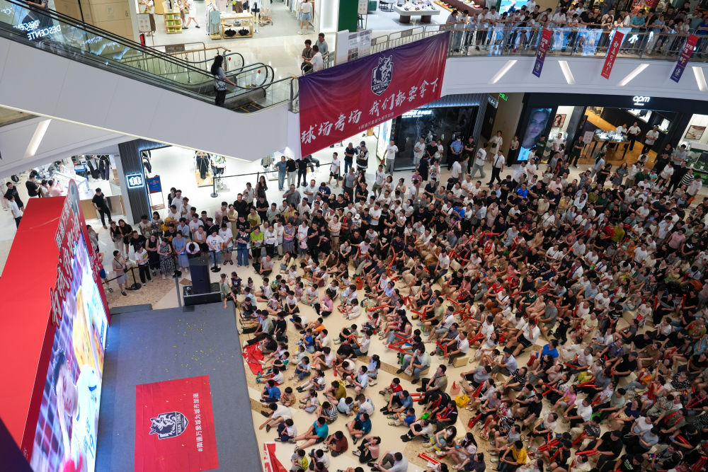 6月29日,市民、球迷在南通市內一處商場觀看“蘇超”比賽直播。新華社記者 李博 攝
