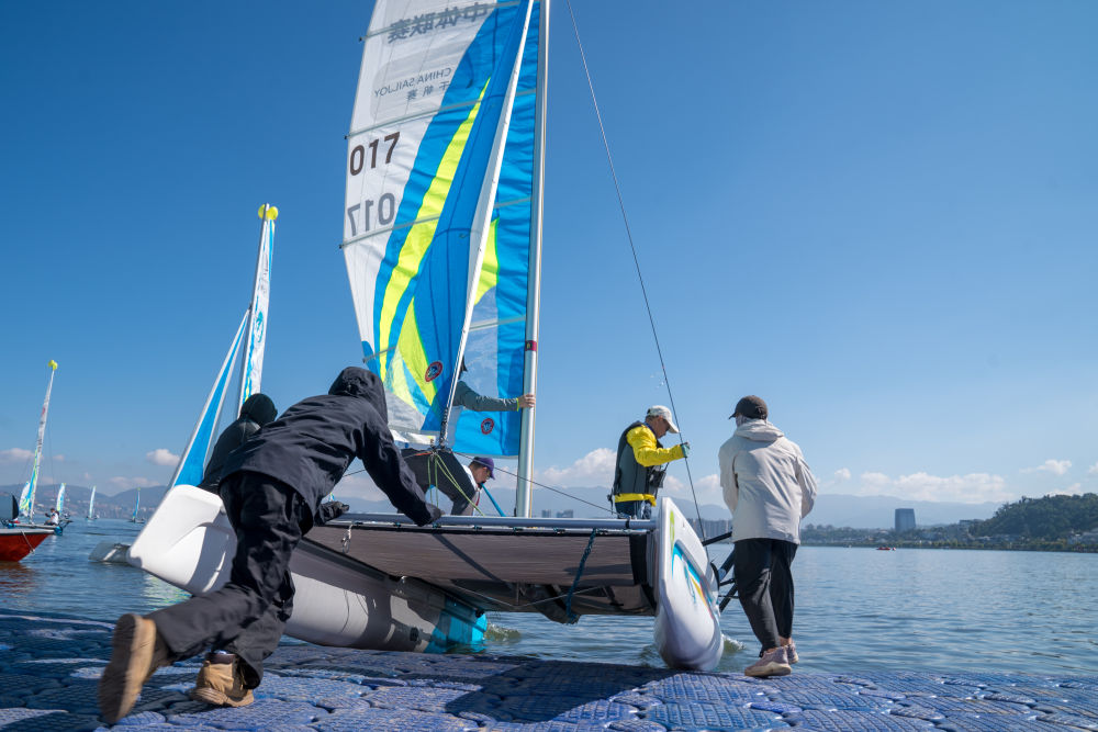 2024年10月26日,參加中國萬水千帆賽(大理站)比賽的船只從出發點下水。當日,2024中國戶外運動產業大會正式啟幕。作為大會四大板塊之一的“賽事活動”也于當日開賽。“賽事活動”板塊共涵蓋4場國家級賽事,分別是大理環洱海自行車賽、中國萬水千帆賽(大理站)、大理徒步行以及古城人車定向挑戰賽。新華社記者 彭奕凱 攝