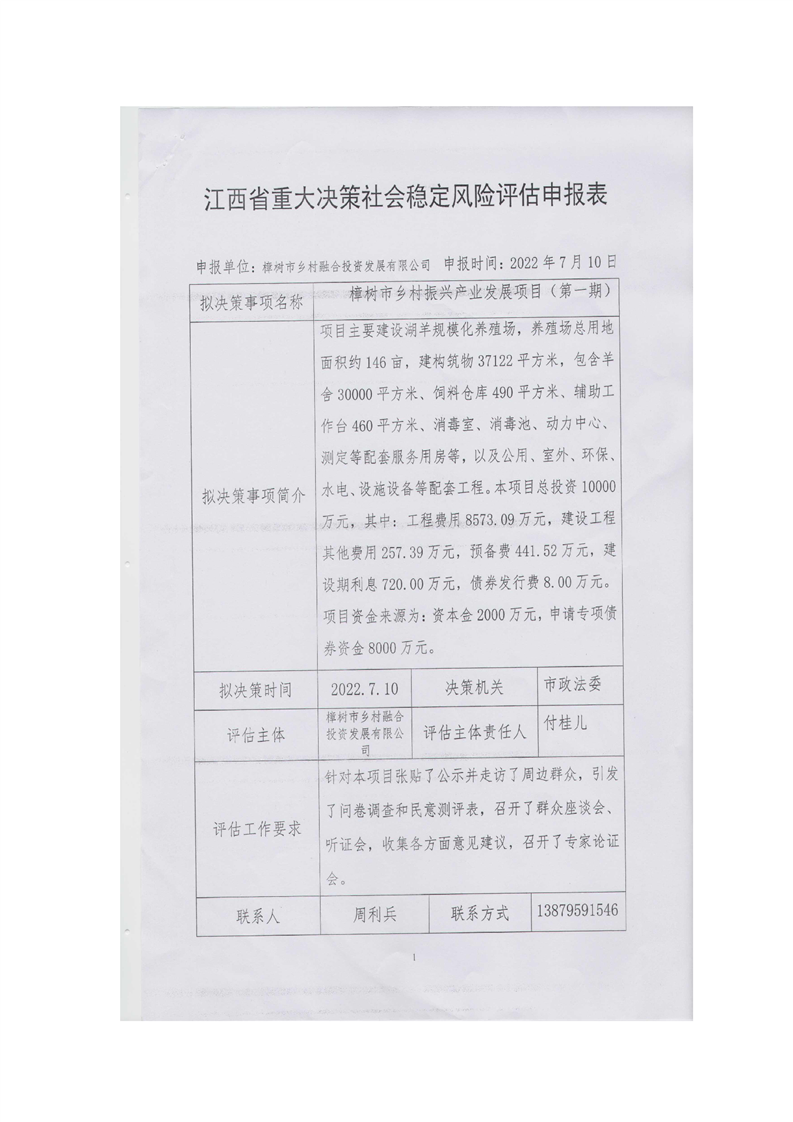 樟樹市鄉村振興產業發展項目(第一期)——江西省重大決策社會穩定風險評估報告申報表