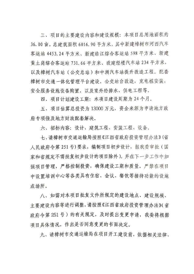 樟發改交通字〔2024〕3號關于同意樟樹市綜合客運交通樞紐建設項目可行性研究報告的批復