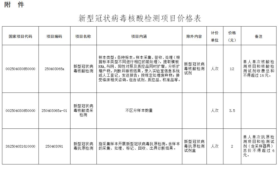 附件:新型冠狀病毒核酸檢測(cè)和抗原檢測(cè)項(xiàng)目?jī)r(jià)格表
