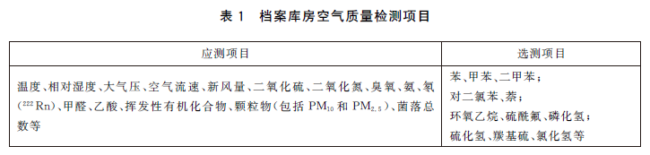 6.1.1.6 選擇室內空氣質量標準中要求控制的且與檔案工作相關的檢測項目。