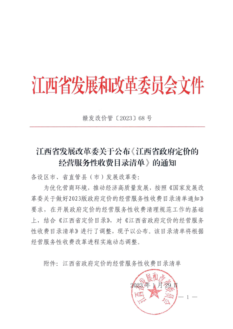 轉發江西省發展改革委關于公布《江西省政府定價的經營服務性收費目錄清單》的通知