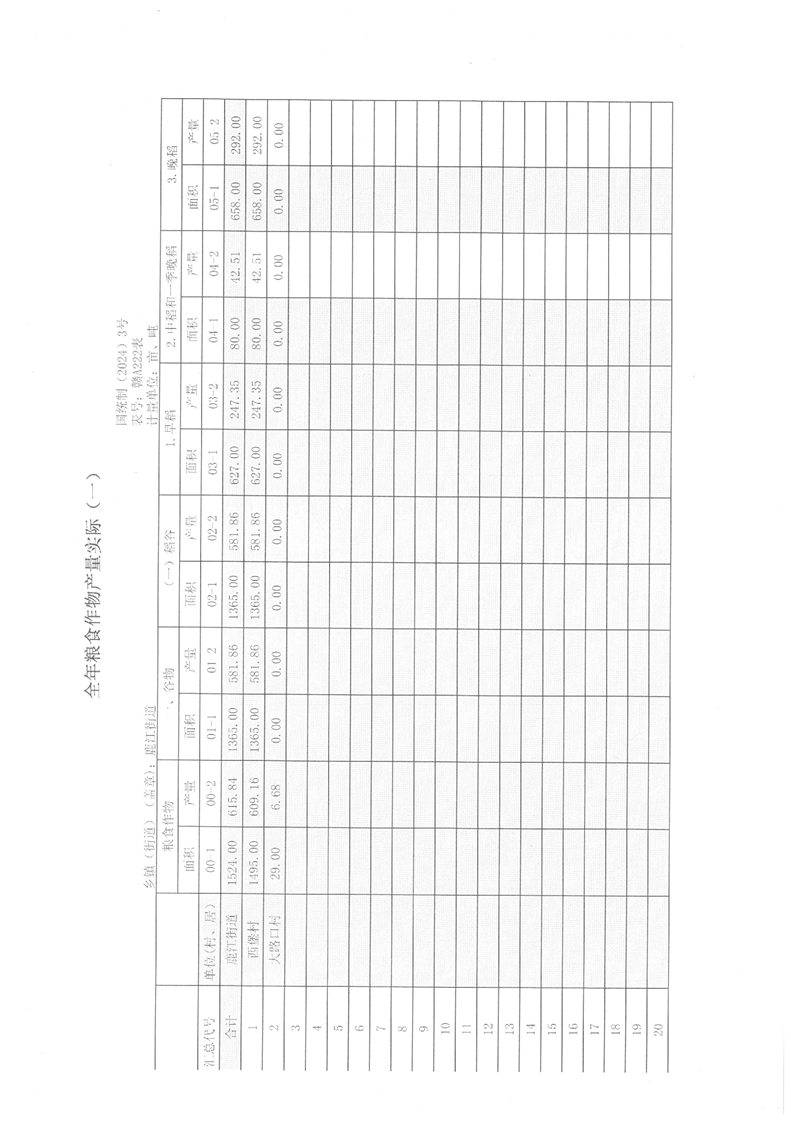 鹿江街道2024年糧食作物產量統計表