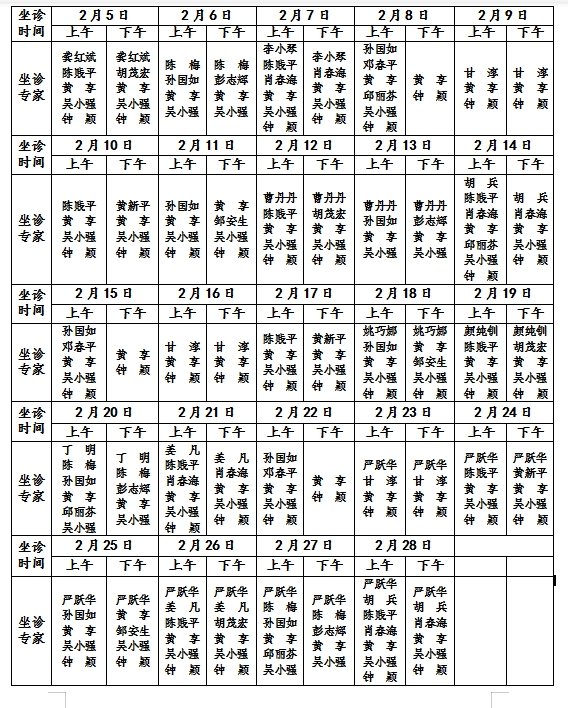 坐診時間:2月8日上午、2月14日上午、2月20日上午、2月27日上午