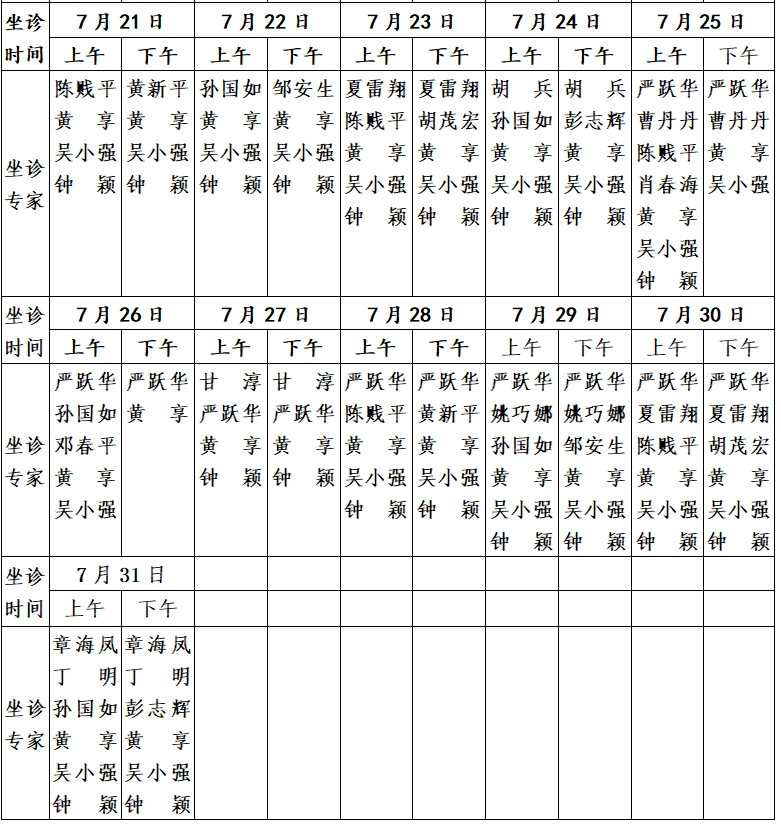 一直以來,樟樹市委、市政府高度重視中醫藥事業發展,為全力推進優質醫療資源共享共發展,保障樟樹市乃至全省范圍內廣大人民群眾享有高品質中醫醫療服務的需求,實現人民群眾“方便看中醫、放心用中藥、看上好中醫”的目標。2025年我市將繼續邀請省內外中醫專家深入樟幫中醫藥一條街國醫館坐診。屆時,各科專家將為您提供健康指導、答疑解惑及個性化的疾病診療服務。2025年7月專家坐診信息如下: