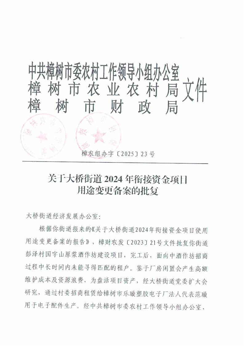 關于大橋街道2024年銜接資金項目用途變更備案的公告