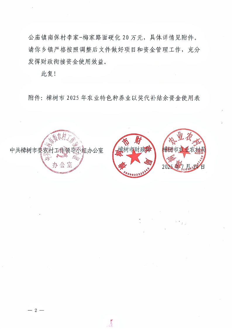 關(guān)于2025年度農(nóng)業(yè)色種養(yǎng)業(yè)以獎(jiǎng)代補(bǔ)項(xiàng)目結(jié)余資金變更使用的公告