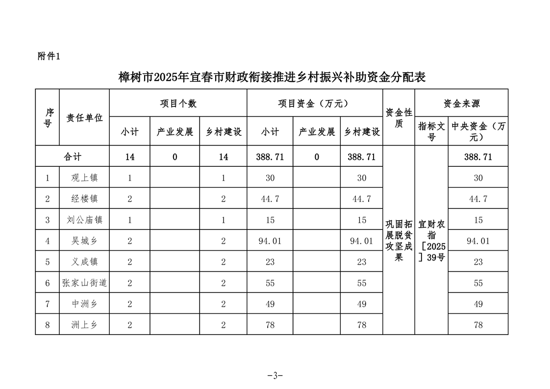 關于下達2025年宜春市財政銜接推進鄉村振興補助資金的公告
