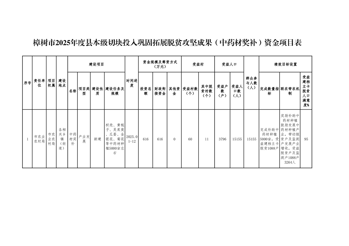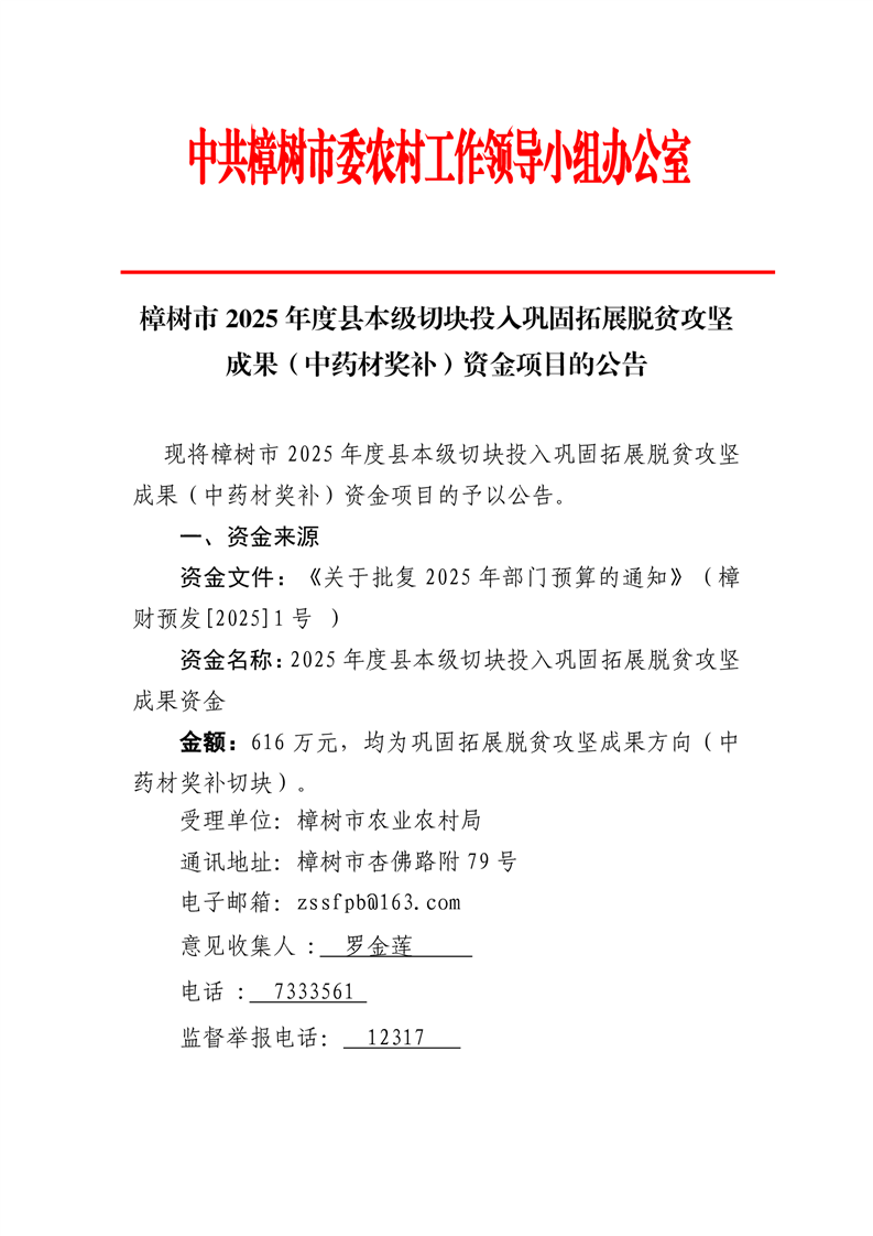 樟樹市2025年度縣本級切塊投入鞏固拓展脫貧攻堅(jiān)成果(中藥材獎補(bǔ))資金項(xiàng)目的公告