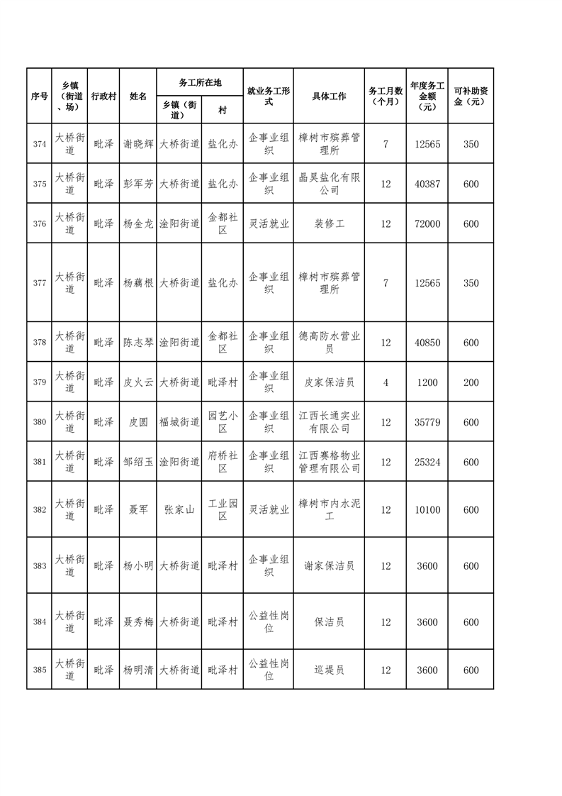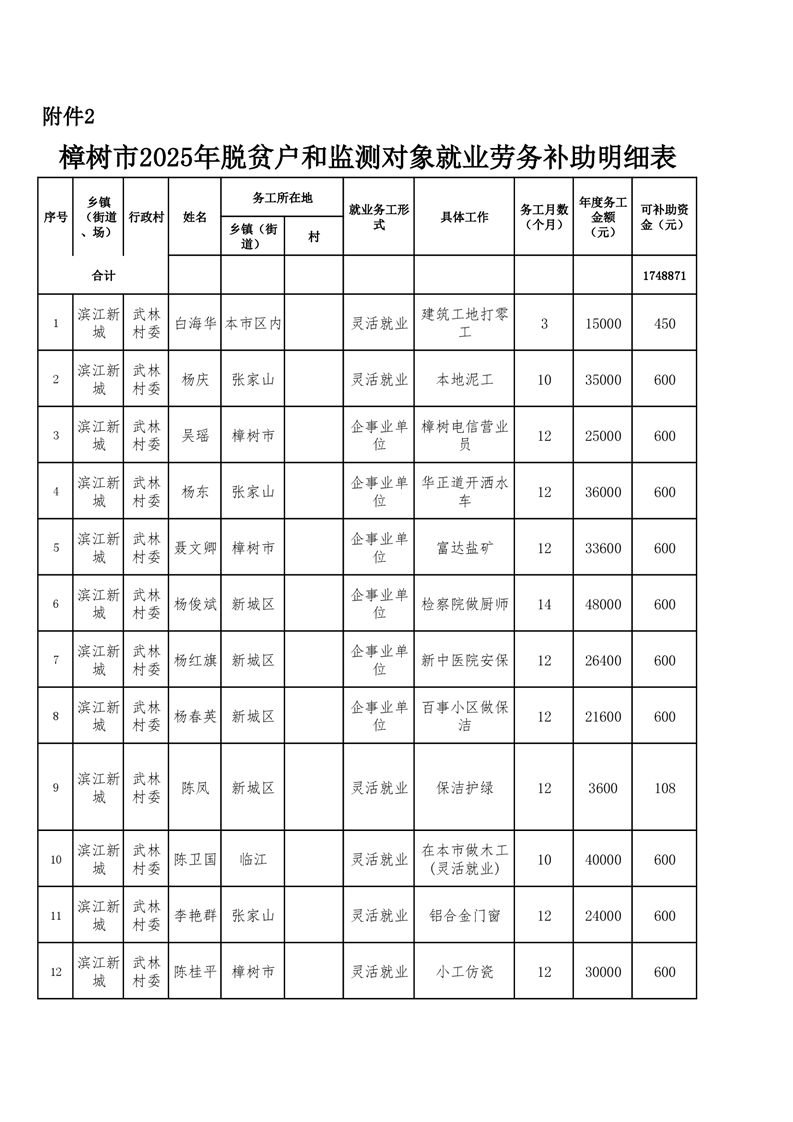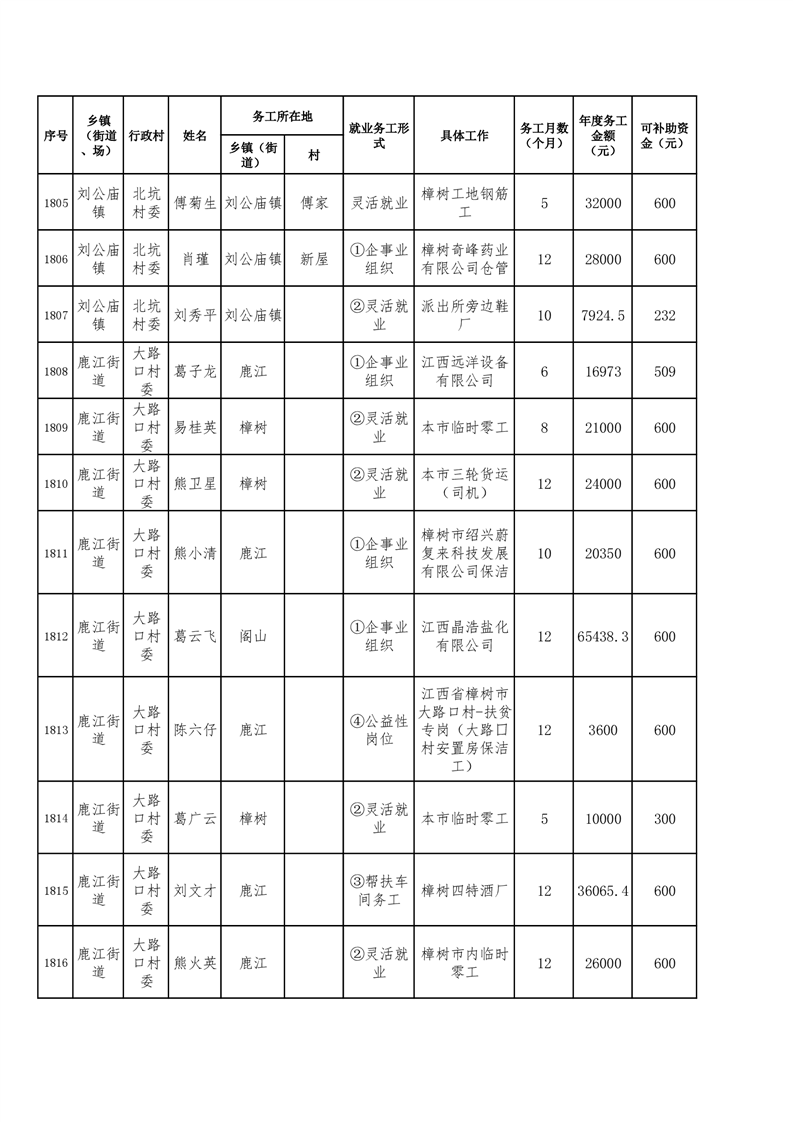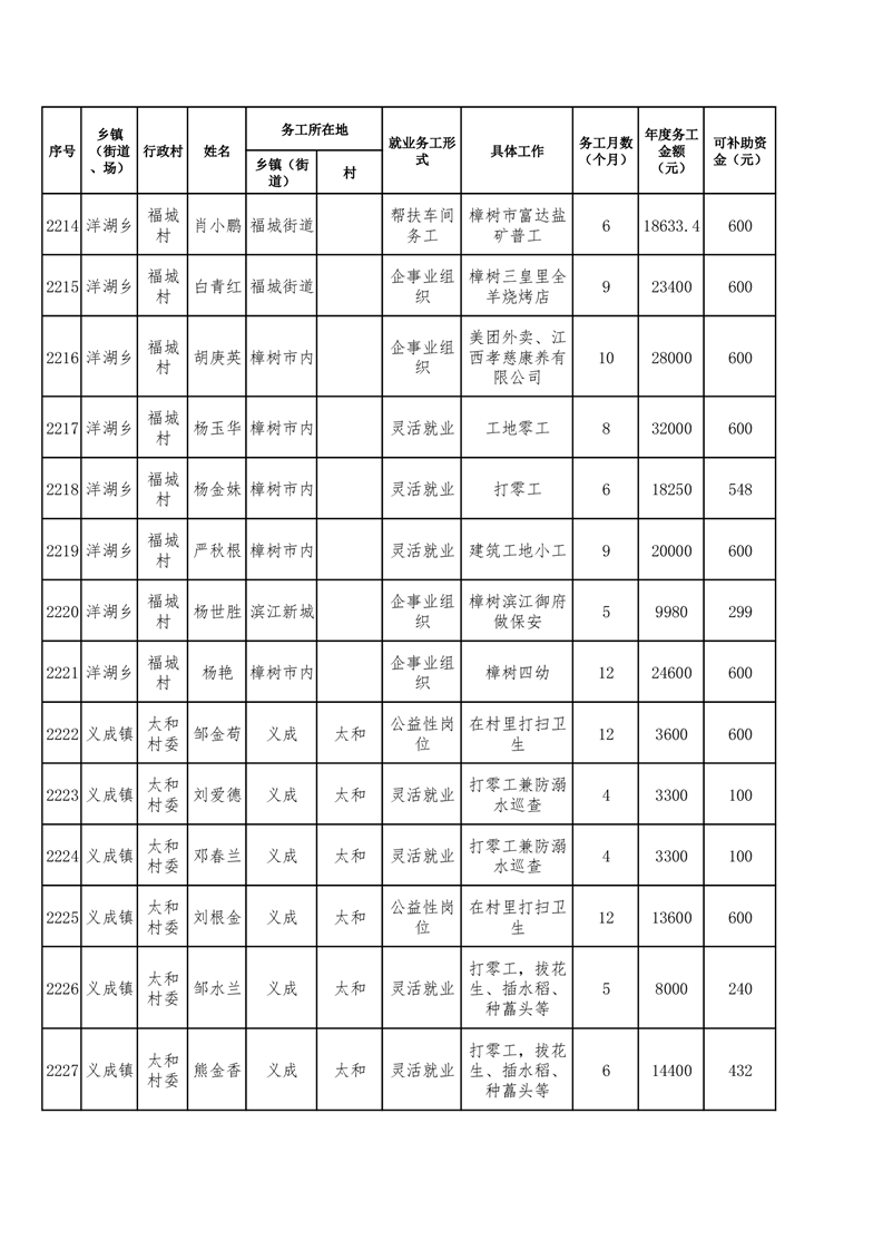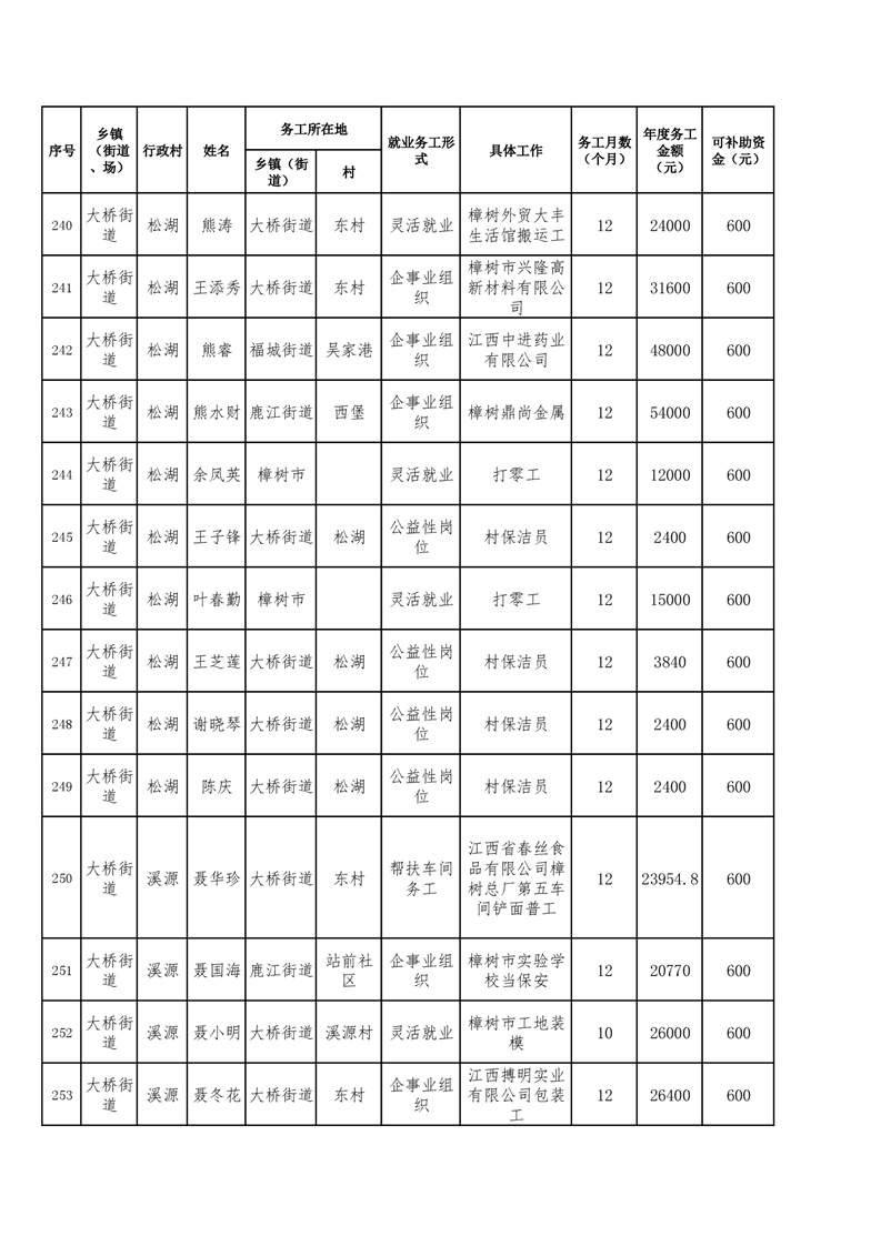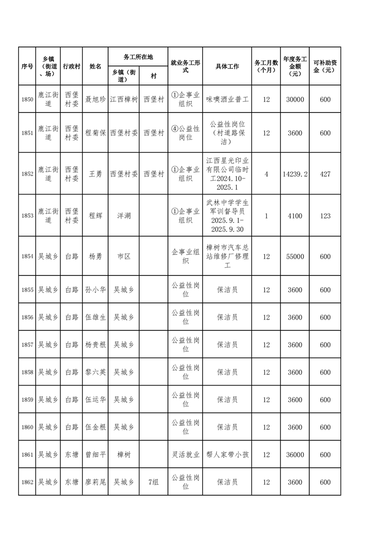關于樟樹市2025年脫貧人口及防止返貧監測對象務工獎補的公示