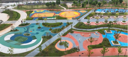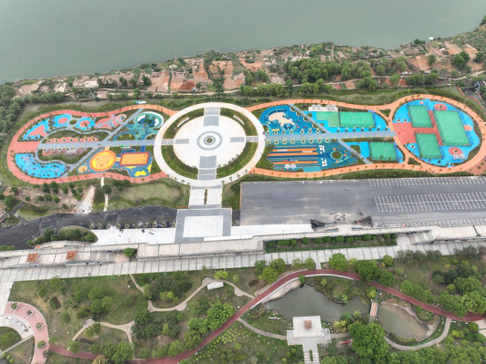 項目建設內容充分考慮了全年齡段市民的需求,主要包括:建設6個乒乓球臺、5個羽毛球場、2個排球場、1個網球場等標準體育設施;配備55套休閑桌椅、10套成人健身器材、17套兒童娛樂設施;安裝108套園路燈、36套球場燈保障夜間照明,并布設21個監(jiān)控探頭確保游園安全。同時,約1公里長的彩色瀝青跑道將各個功能區(qū)有機串聯。