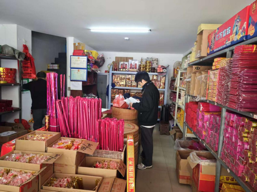 檢查組一行先后深入轄區內煙花爆竹零售點、農貿市場、商超等重點場所,通過“聽匯報、查臺賬、看現場”的方式,重點檢查經營主體是否具備合法經營資質、煙花爆竹儲存是否符合安全規范、消防設施是否配備齊全且完好有效、警示標識是否醒目清晰,同時詳細查看進貨渠道、產品質量檢驗報告等相關資料,嚴厲查處無證經營、超量儲存、銷售偽劣產品等違法違規行為。