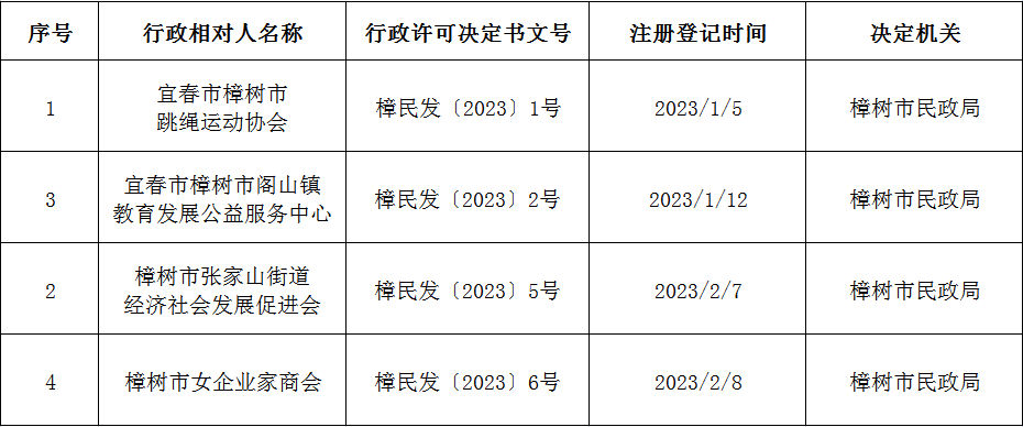2023年上半年樟樹市社會組織成立登記信息