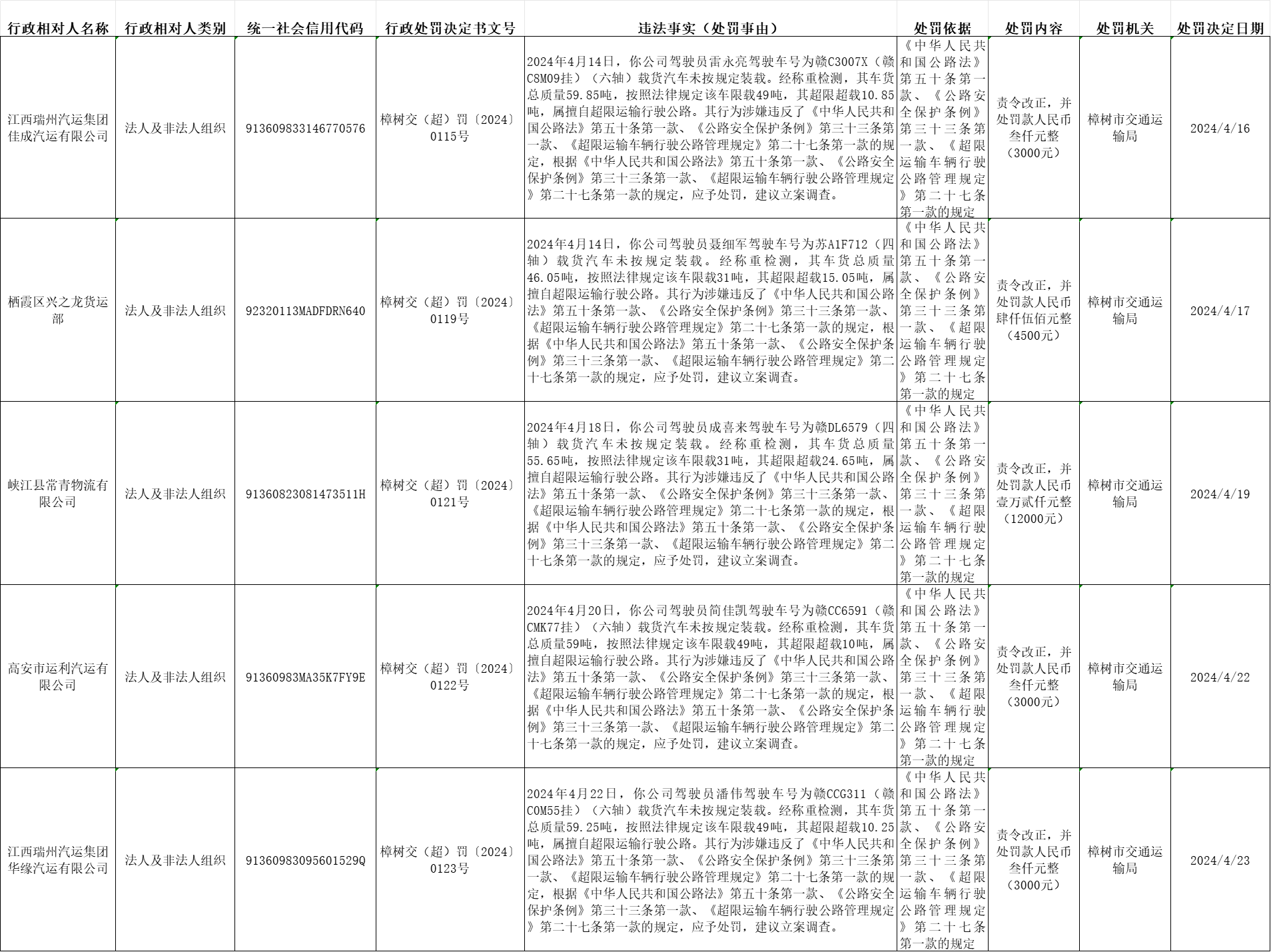 樟樹市交通運輸局行政處罰案件信息公開表(2024年4月)