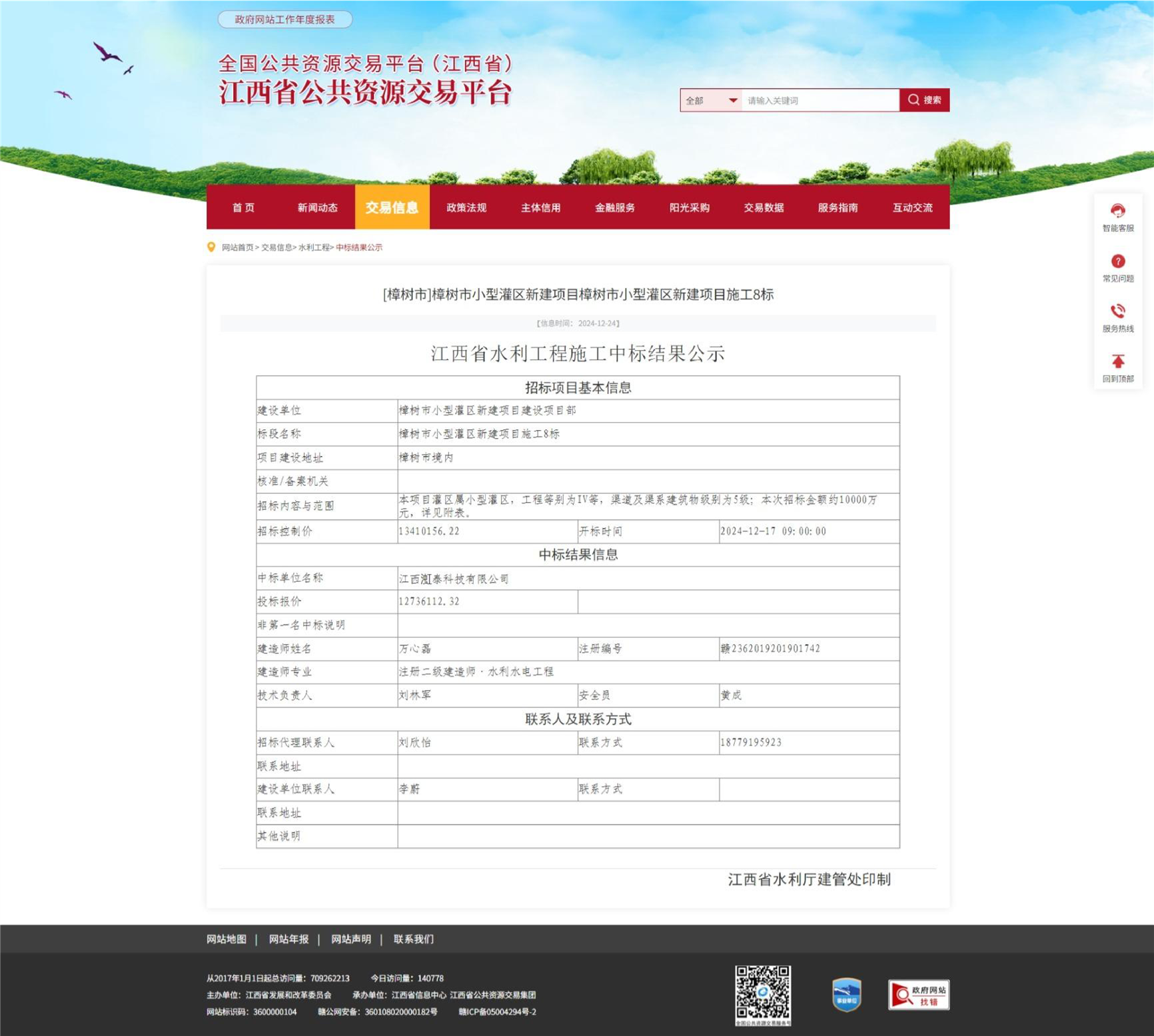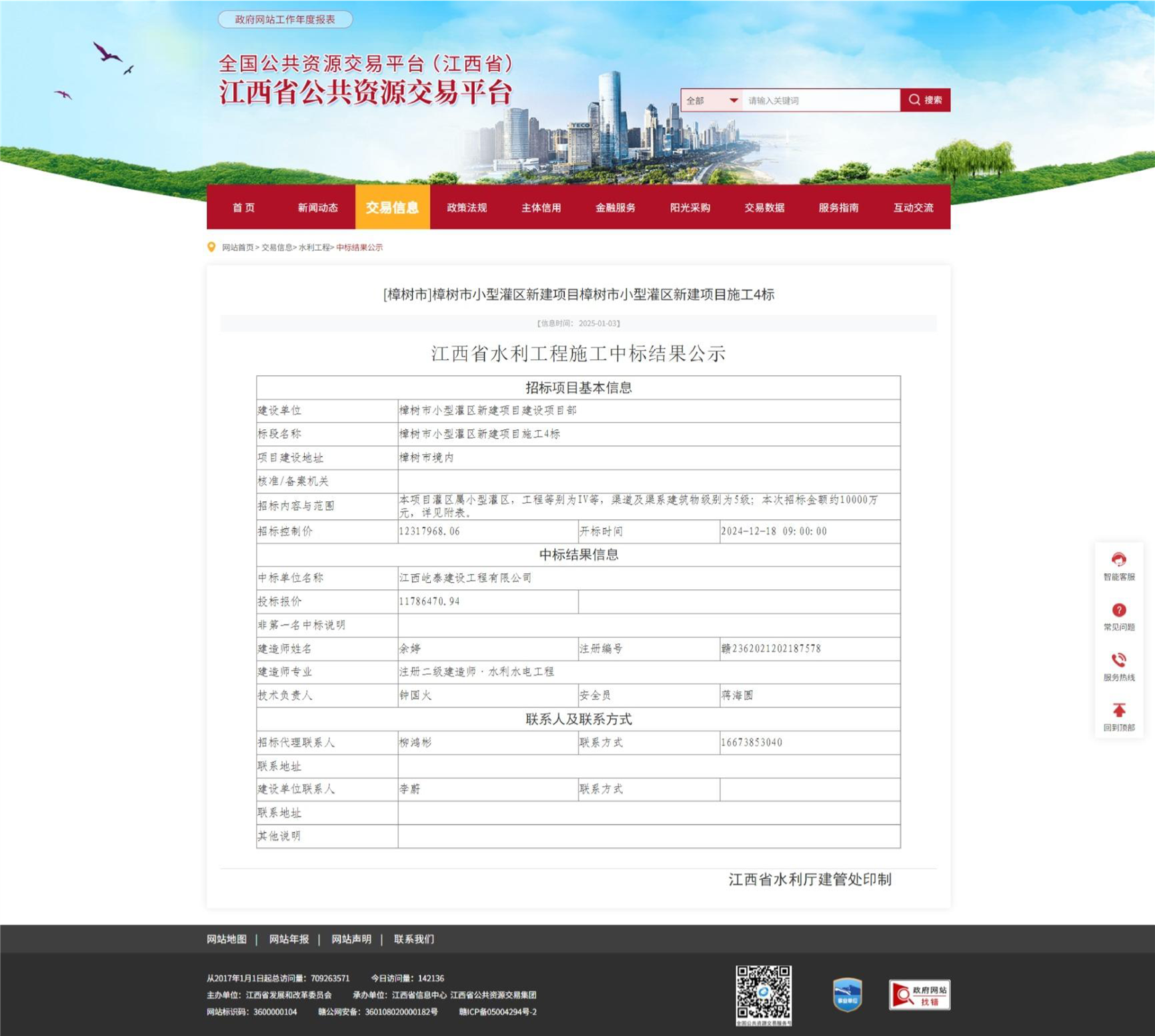 樟樹市小型灌區新建項目施工招標公告與中標公示