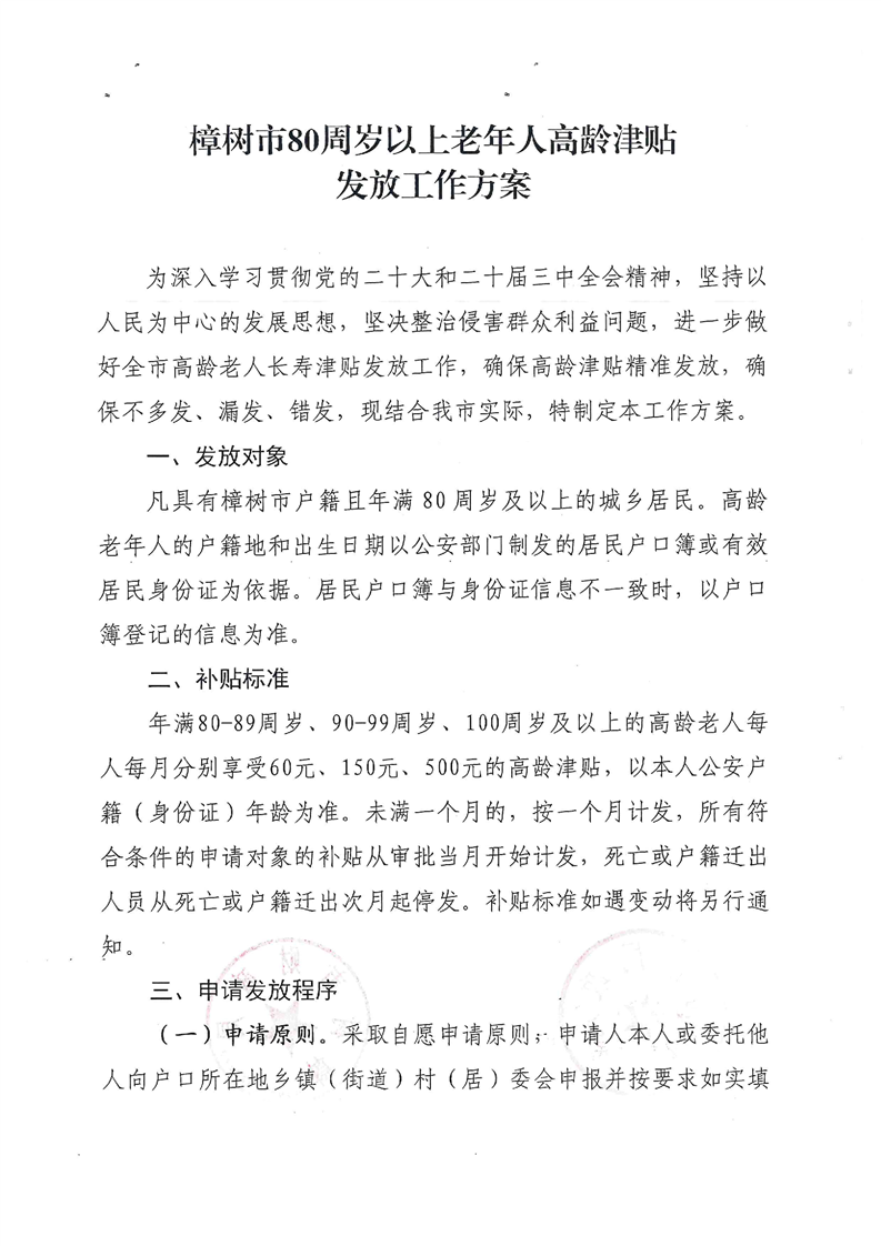 【轉載】 關于印發《樟樹市80歲以上老年人高齡津貼發放工作方案》的通知