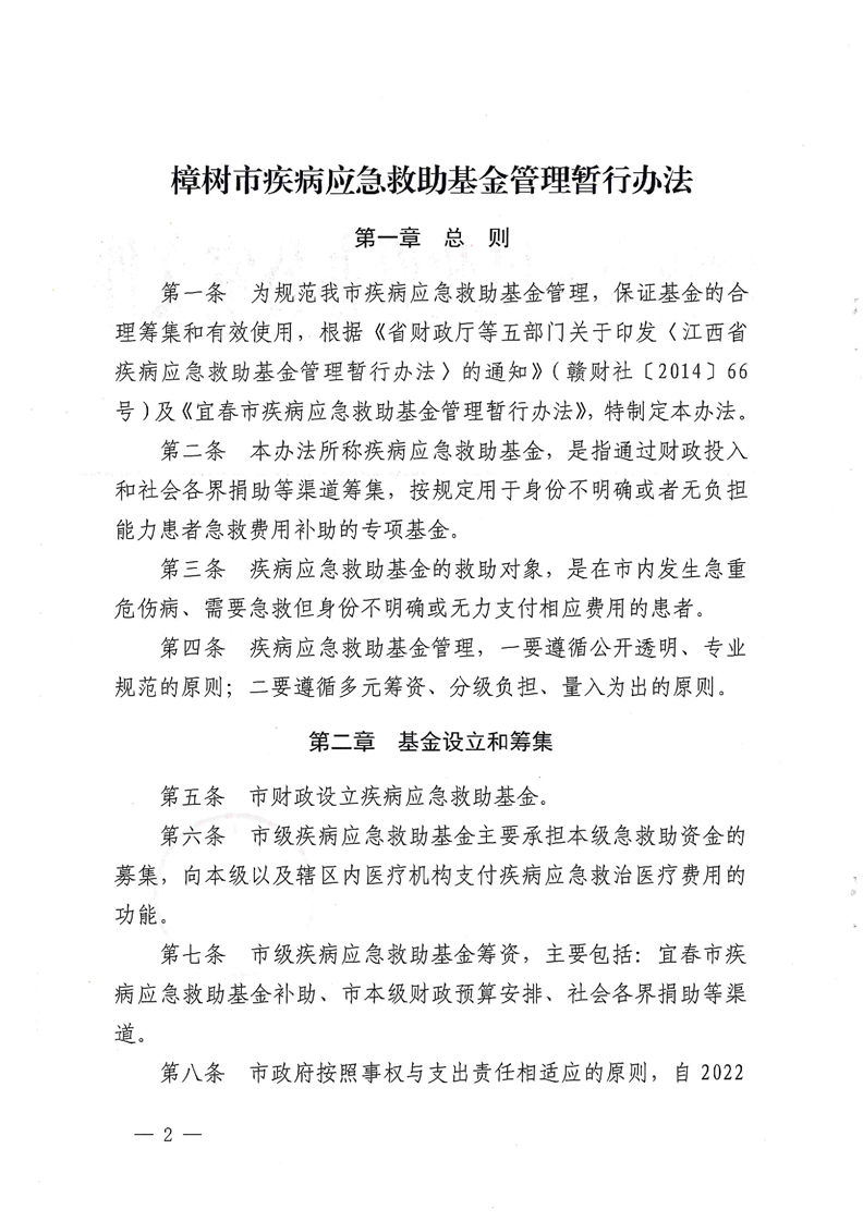 樟府辦發(fā)〔2022〕74號 樟樹市人民政府辦公室關(guān)于印發(fā)《樟樹市疾病應(yīng)急救助基金管理暫行辦法》的通知