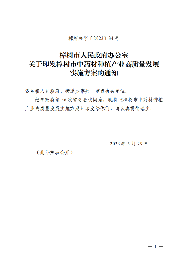 樟府辦字〔2023〕34 號關于印發《樟樹市中藥材種植產業高質量發展實施方案》的通知.pdf