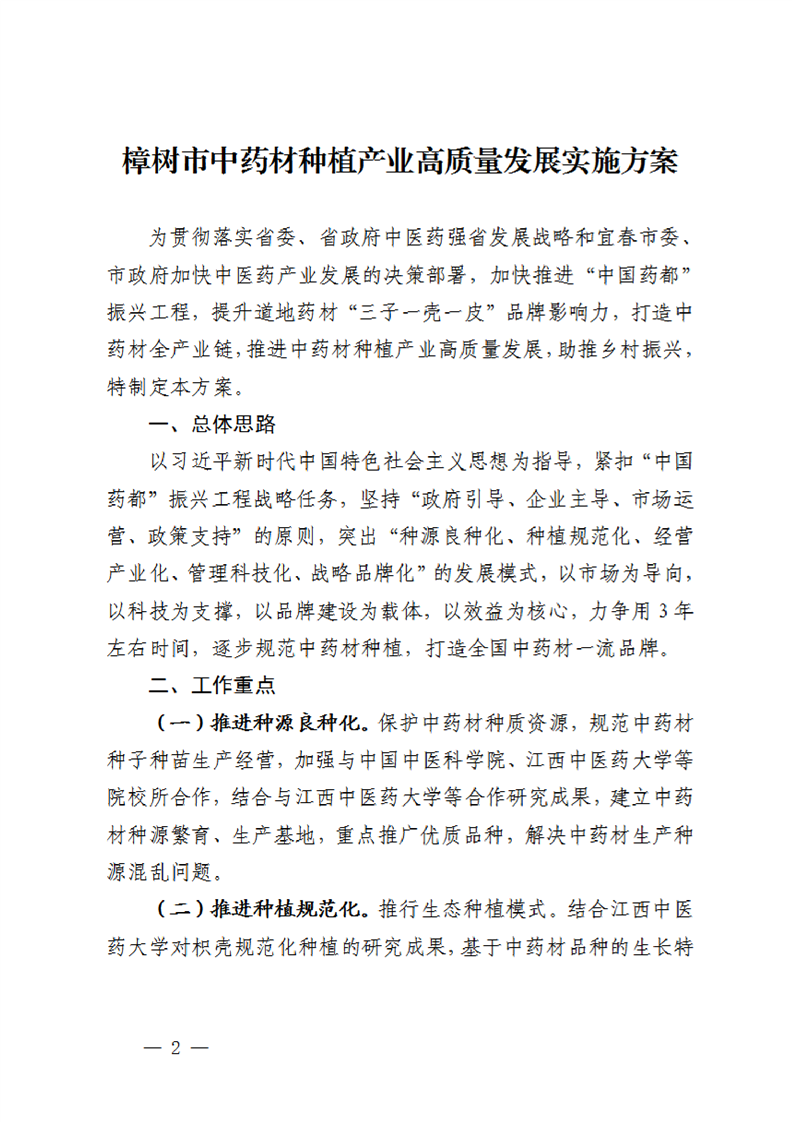 【文字解讀】《樟樹市中藥材種植產業高質量發展實施方案》?