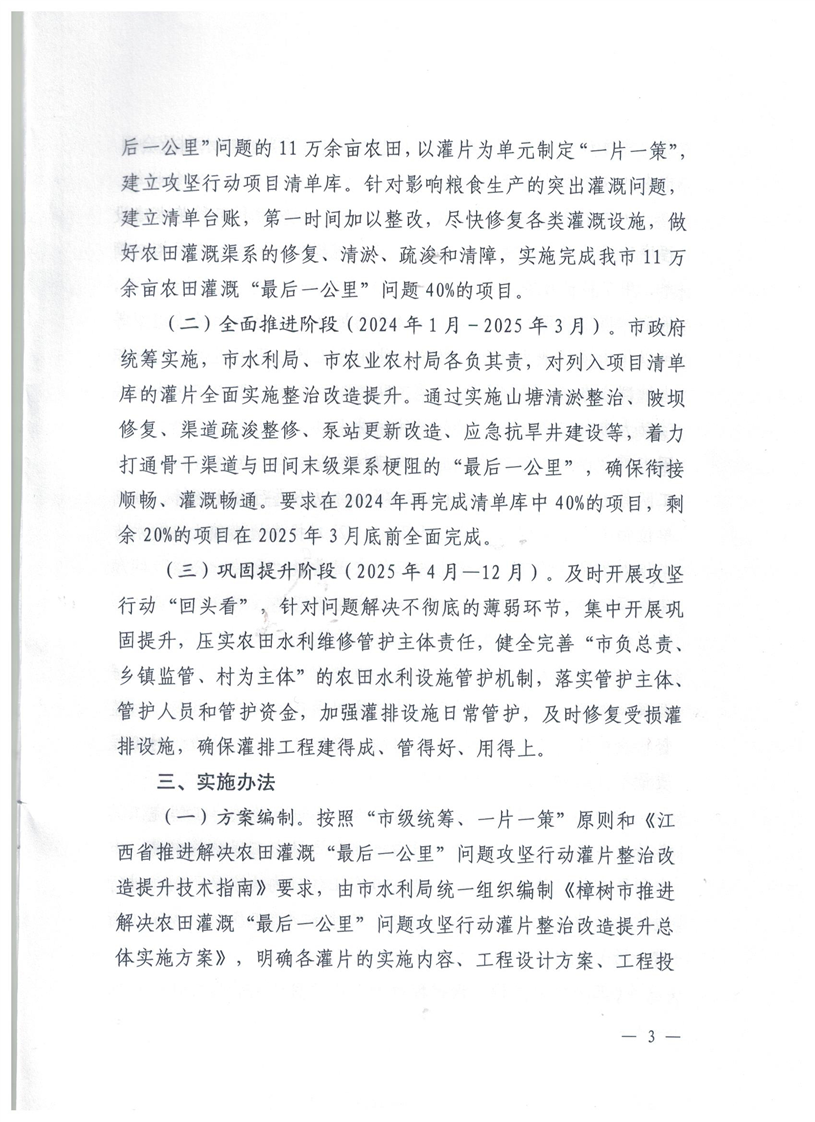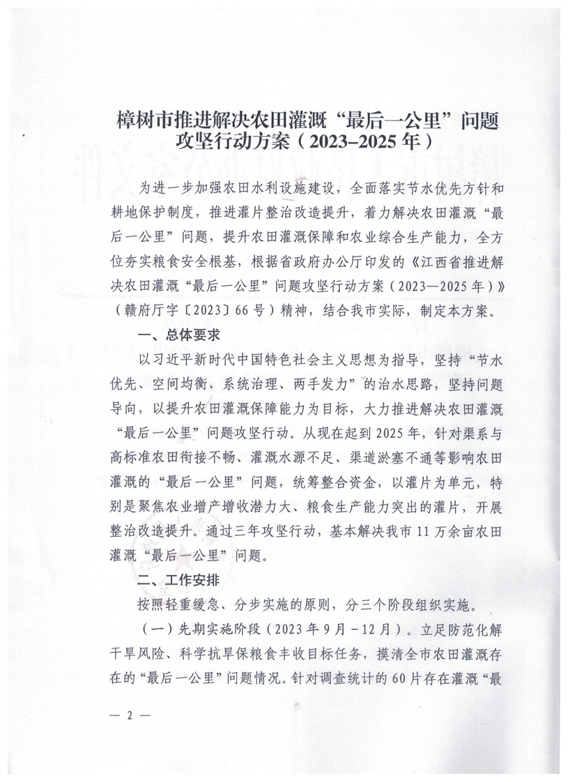 【文字解讀】關于印發《樟樹市推進解決農田灌溉“最后一公里”問題攻堅行動方案(2023-202...