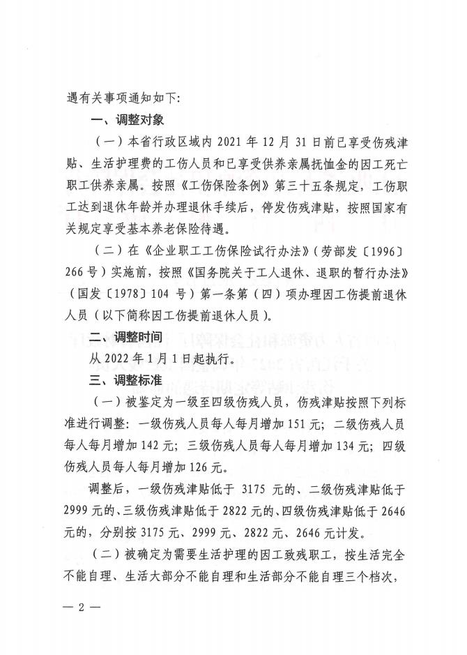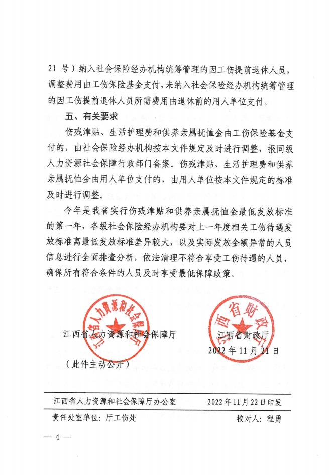 贛人社發〔2022〕33號關于江西省2022年調整因工致殘人員傷殘津貼等定期待遇的通知