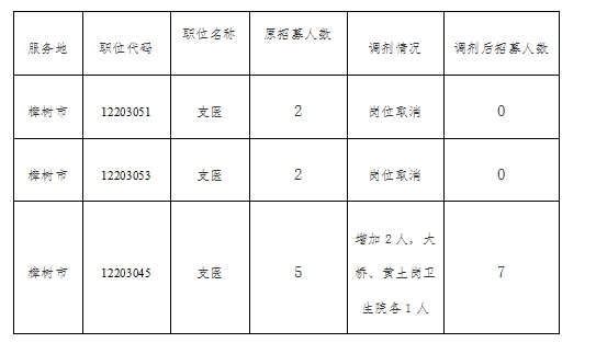 我市“三支一扶”計劃服務崗位招募計劃數與報名人數低于1:2比例的,經征求縣(市、區)意見,市“三支一扶”辦擬定了調劑計劃,并報省“三支一扶”辦同意。現將崗位計劃調劑情況公告如下: