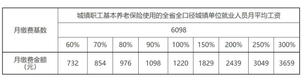 一、2023年城鎮職工基本養老保險使用的全省全口徑城鎮單位就業人員月平均工資為6098元。2023年月繳費基數下限標準為 3659元,月繳費基數上限標準為18294元。