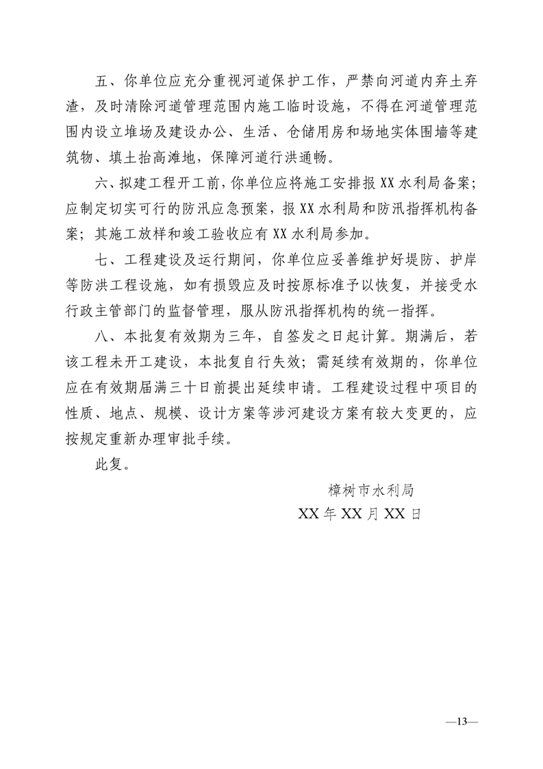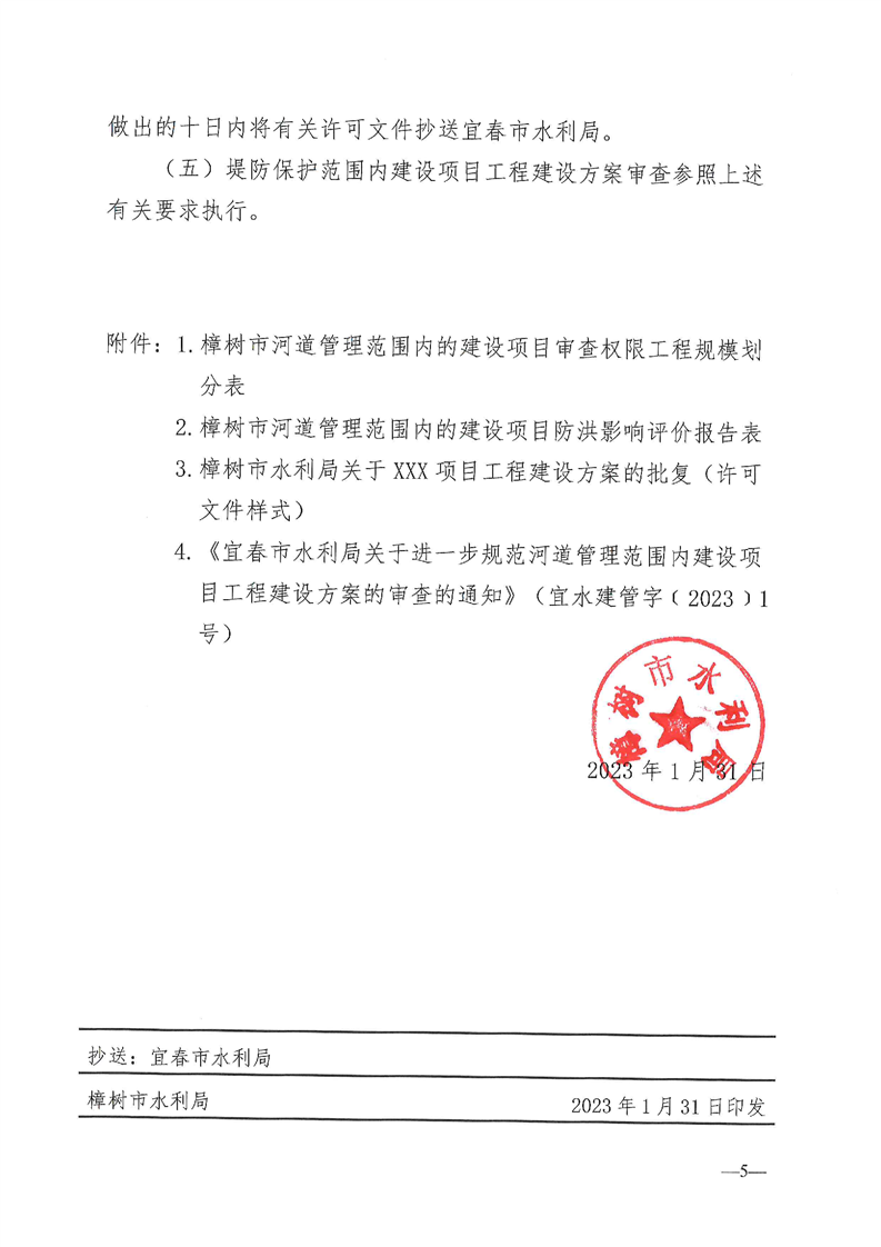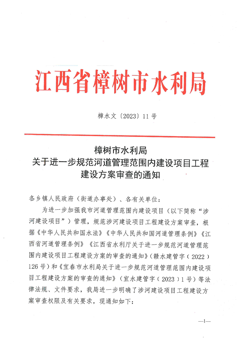 樟樹市水利局關于進一步規范河道管理范圍內建設項目工程建設方案審查的通知