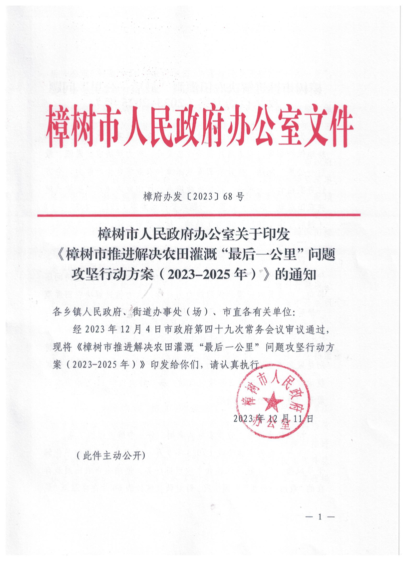 樟府辦發〔2023〕68號 關于《樟樹市推進解決農田灌溉“最后一公里”問題攻堅行動方案》的通知