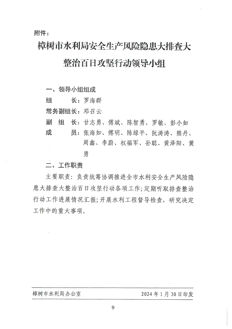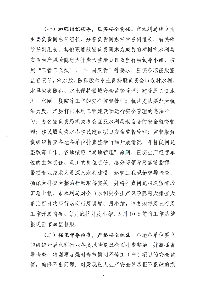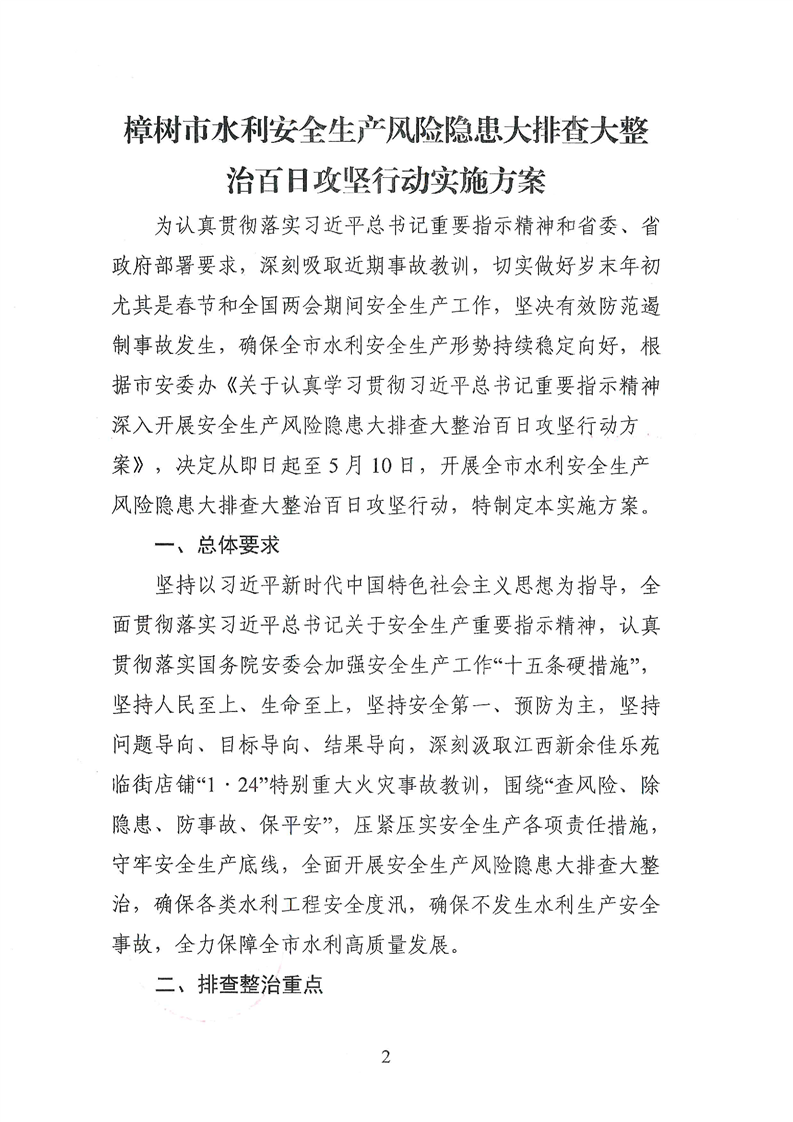 關于印發樟樹市水利安全生產風險隱患大排查大整治百日攻堅行動實施方案的通知