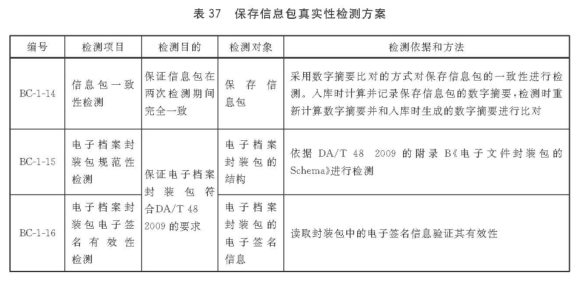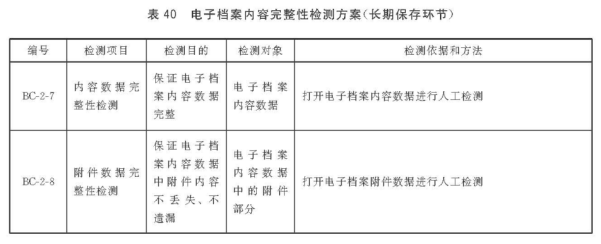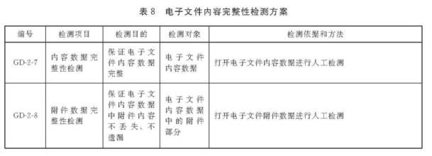 電子檔案內(nèi)容完整性檢測方案如表40所示。