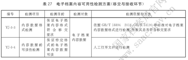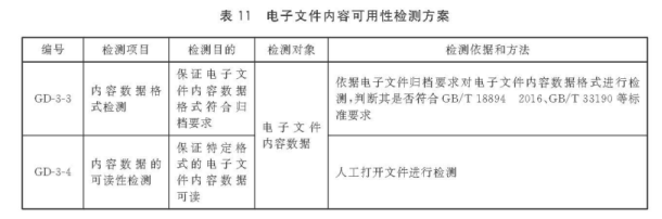 電子檔案內(nèi)容可用性檢測方案如表27所示。