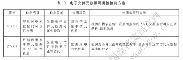 電子文件元數(shù)據(jù)可用性檢測方案如表10所示。
