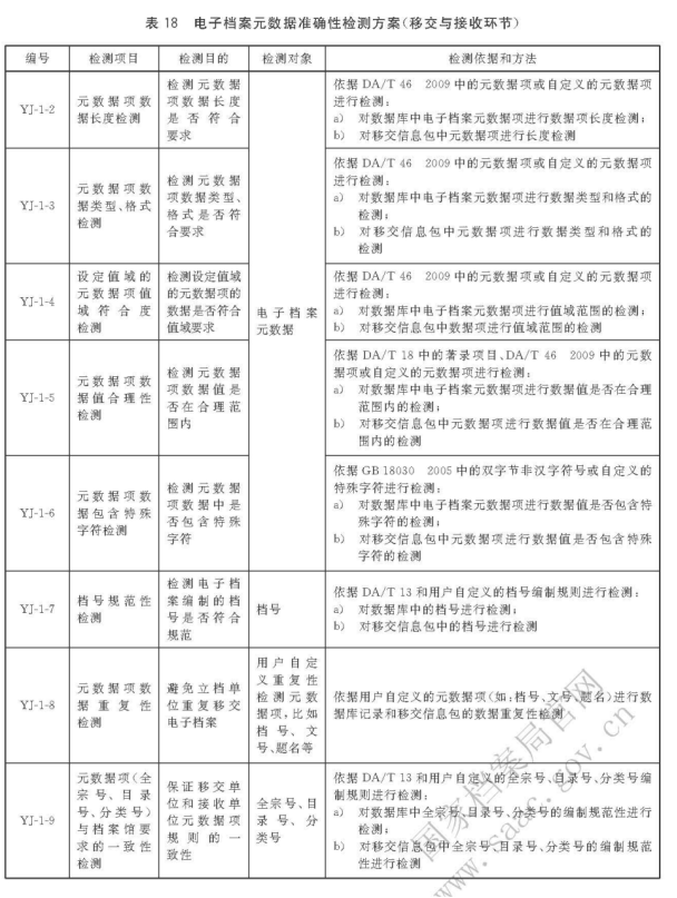 電子檔案元數(shù)據(jù)準確性檢測方案如表18所示。
