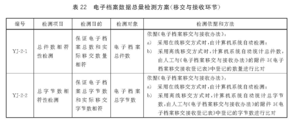 檢測實際歸檔的電子文件數(shù)量和字節(jié)數(shù)與 GB/T 18894一2016 的表A.1《電子文件歸檔登記表》中登記的電子文件數(shù)量和字節(jié)數(shù)是否相符。