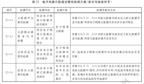 電子檔案元數(shù)據(jù)完整性檢測方案如表23所示。