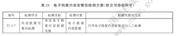電子檔案內(nèi)容完整性檢測方案如表24所示。