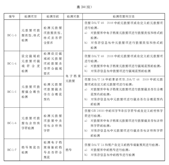 電子檔案元數(shù)據(jù)準確性檢測方案如表34所示。