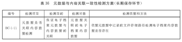 元數(shù)據(jù)與內(nèi)容關(guān)聯(lián)一致性檢測方案如表36所示。