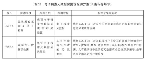 電子檔案元數(shù)據(jù)完整性檢測方案如表39所示。