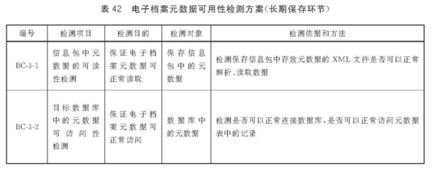 電子檔案元數(shù)據(jù)可用性檢測方案如表42所示。