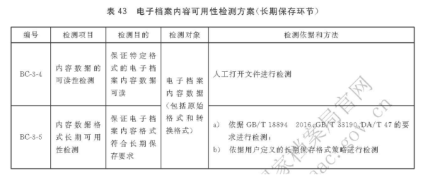 電子檔案內(nèi)容可用性檢測方案如表43所示。