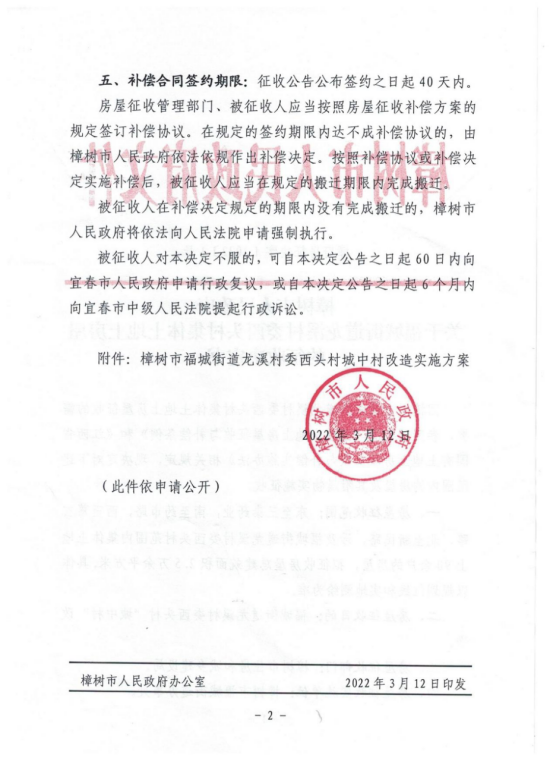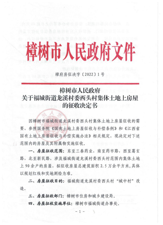 關于福城街道龍溪村委西頭村集體土地上房屋的征收決定書